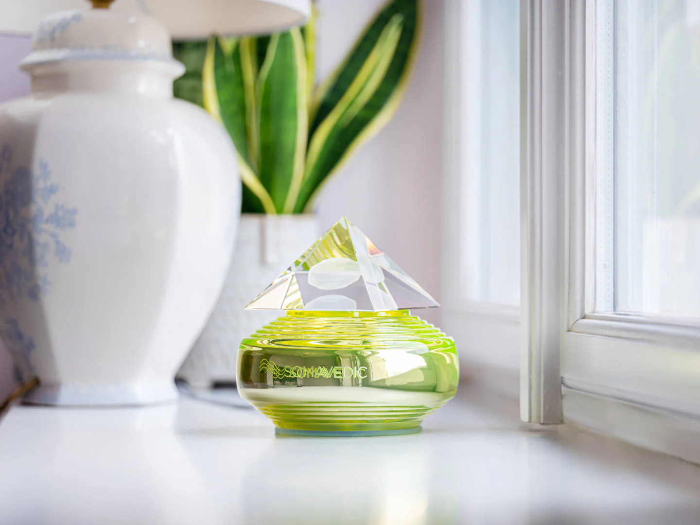 Material: Optical crystal glass with 3D hologram of Somavedic inside the pyramid